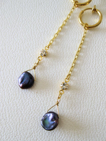 material : 淡水ケシパール(8-9mm) クリスタル フープイヤリング(11mm ゴールドカラー) etc