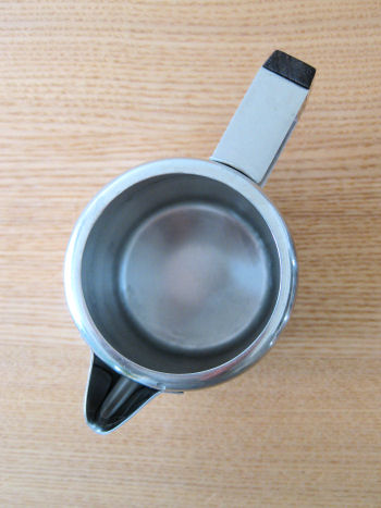 ステンレス×ウッドハンドルが素敵なミルクジャグです。 スクラッチなどがみられますが、自然の風合いとしてお楽しみください。